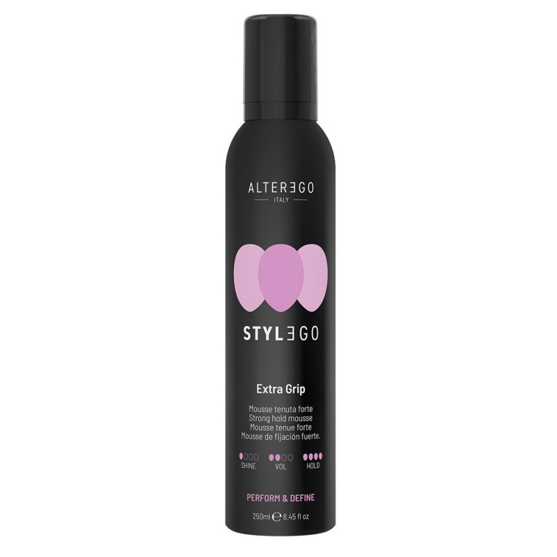 Alter Ego STYLEGO Extra Grip Mousse è una mousse a tenuta forte. Dà corpo e struttura, ideale per acconciature estreme.