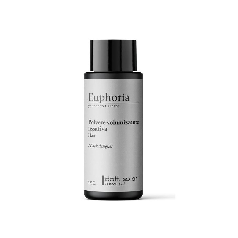 dott. solari COSMETICS Euphoria Polvere Vvolumizzante Fissativa è una polvere volumizzante styling uomo a effetto immediato, ideale per donare corpo e struttura ai capelli fini o privi di volume. La sua formula leggera, arricchita con pantenolo, rinforza la fibra capillare, migliora la consistenza e garantisce una tenuta strong a lunga durata. Perfetta per creare volumi strutturati alla radice o definire lo styling con una finitura opaca naturale, senza lasciare residui. Tenuta forte con finitura opaca.