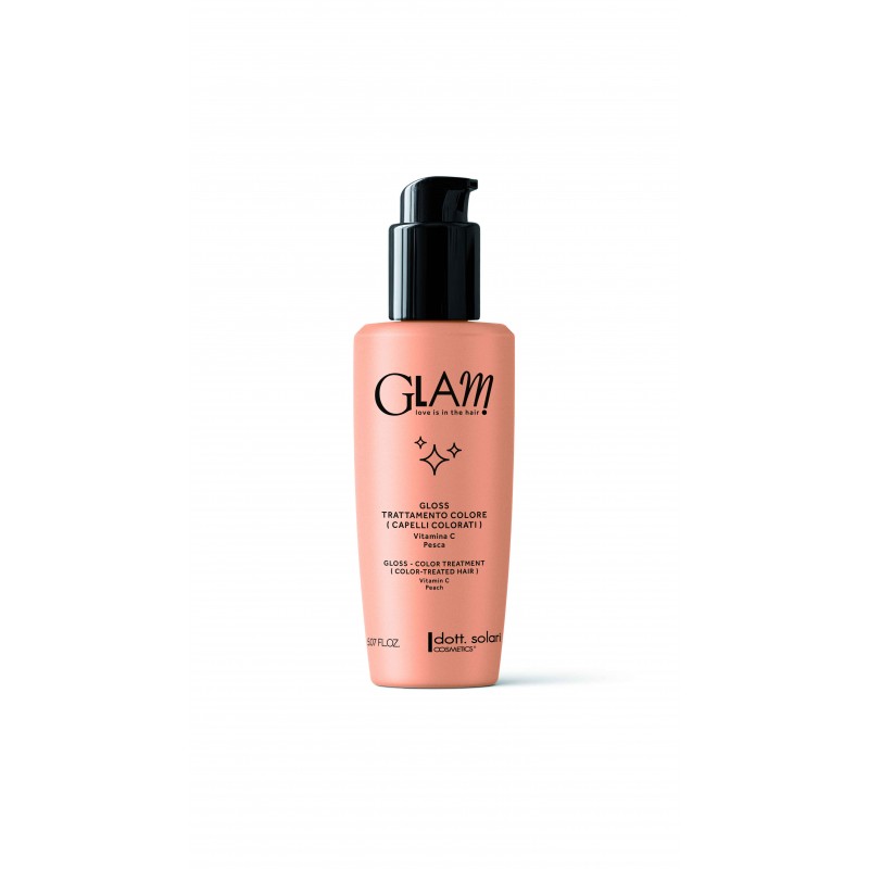 dott. solari COSMETICS Glam Gloss-Color Treatment è un trattamento post-colore ideale per la cura di capelli colorati e trattati. La sua texture cremosa avvolge la fibra capillare, sigilla le cuticole ed esalta la luminosità, rendendo i capelli morbidi, setosi e brillanti. Contiene estratto di pesca e Vitamina C che proteggono e ravvivano il colore, nutrono e rinforzano il capello svolgendo un'azione emolliente e levigante prolungando la durata e brillantezza del colore nel tempo.