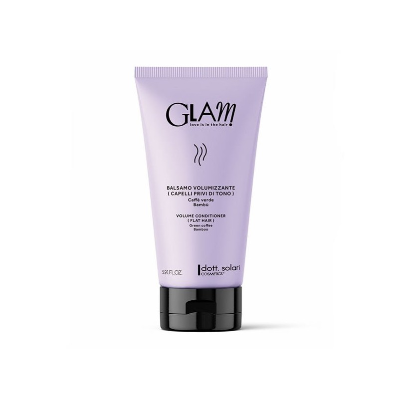 dott. solari COSMETICS Glam Volume Conditioner è un balsamo volumizzante condizionante ideale per capelli fini e sottili. Districa delicatamente senza appesantire, donando corpo, morbidezza e leggerezza alla chioma. La sua formula contiene estratto di Caffè Verde, ricco di antiossidanti e vitamine, con effetto energizzante e rivitalizzante, e estratto di Bambù, fonte naturale di silicio organico, che rinforza la fibra capillare, migliorandone elasticità e lucentezza