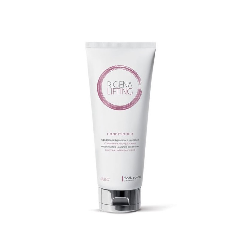 dott. solari COSMETICS Rigena Lifting Conditioner è un balsamo condizionante ristrutturante ideale per capelli stressati, sensibilizzati o sottoposti a trattamenti chimici. Districa e ammorbidisce senza appesantire, mentre agisce sulla fibra capillare con un effetto rinforzante, idratante e protettivo. Grazie alla sua formula con Hyamagic-4D™ (acidi ialuronici) ed Estratto di Cachemire, lascia i capelli più morbidi, elastici e resistenti, migliorandone l'aspetto e la pettinabilità fin dalla prima applicazione.
