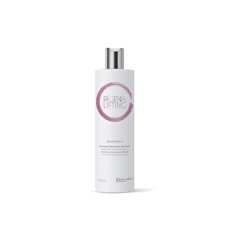 dott. solari COSMETICS Rigena Lifting Shampoo è uno shampoo trattamento ristrutturante ideale per capelli stressati, sensibilizzati o sottoposti a trattamenti chimici. Deterge delicatamente mentre svolge un'azione rinforzante, idratante e protettiva sulla fibra capillare. Grazie alla sua formula con Hyamagic-4D (acidi ialurinici) e Estratto di Cachemire restituisce corpo, morbidezza e vitalità, preparando il capello a ricevere i successivi trattamenti.