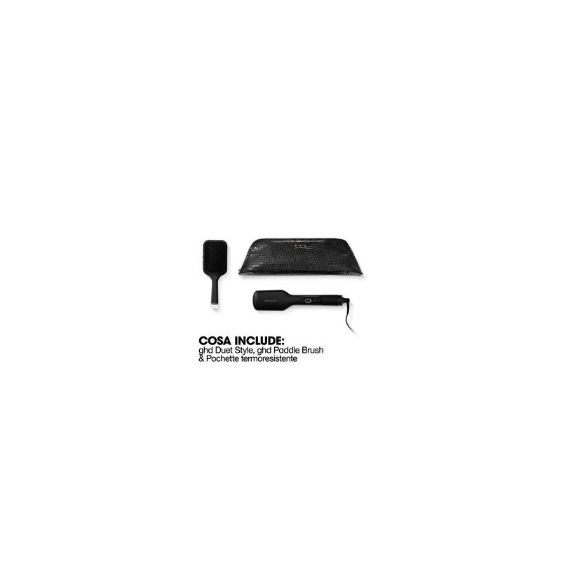 Scopri il glamour di questa stagione e abbraccia l'arte dello styling senza tempo e seducente con il cofanetto ghd Duet Style hot air styler gift set. Vestito con un look festivo e raffinato, questo set esclusivo abbina la nostra innovazione più rivoluzionaria – il ghd Duet Style 2-in-1 hot air styler – alla All-Rounder Paddle Brush e a una bag con tappetino termoresistente coordinati.