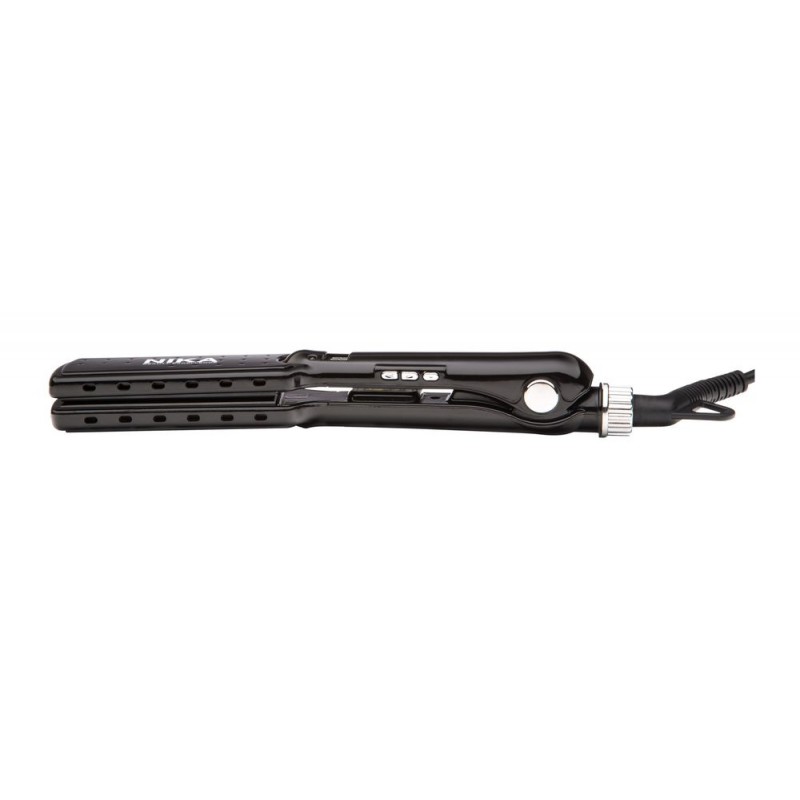 NIKA Curve Styler Tourmaline Plates è una piastra professionale dotata di piatti in ceramica rivestiti in tormalina che garantiscono una distribuzione uniforme del calore, proteggendo la fibra capillare durante lo styling. Grazie alla tecnologia a rilascio di ioni, riduce l'elettricità statica e lascia i capelli morbidi, setosi e luminosi. La superficie ad alta scorrevolezza chiude le cuticole del capello, migliorandone la lucentezza e la durata della piega. Ideale per ottenere uno styling liscio o mosso con risultati professionali e duraturi.
