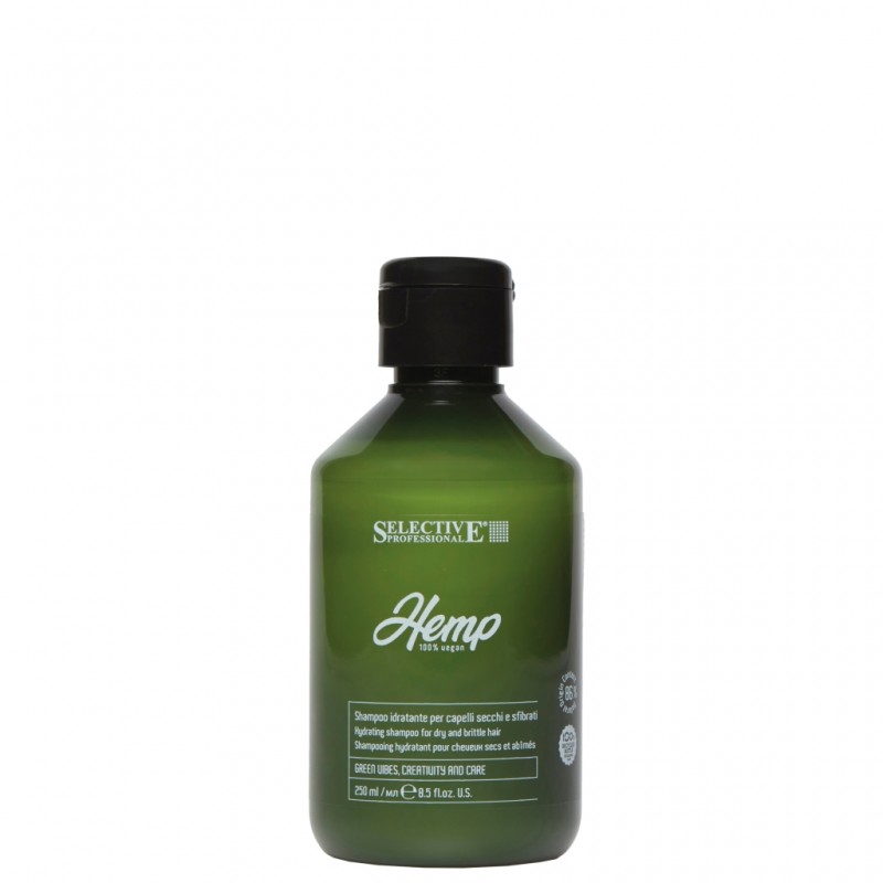 Selective Professional Hemp Shampoo è uno shampoo idratante adatto ai capelli secchi e sfibrati. Privo di SELS, SLS deterge con dolcezza preservando il cuoio capelluto e dona un'intensa morbidezza senza appesantire. La sua nuova formula naturale al 86% idrata, nutre e fortifica in profondità le zone danneggiate ripristinando il giusto grado d'idratazione. Contiene estratti di olio di semi di canapa, Omega 3 e 6 e un complesso di vegetali Hydra Complex con estratto di avena che rendono i capelli luminosi, setosi dalle radici alle punte. Vegano. Non testato sugli animali.