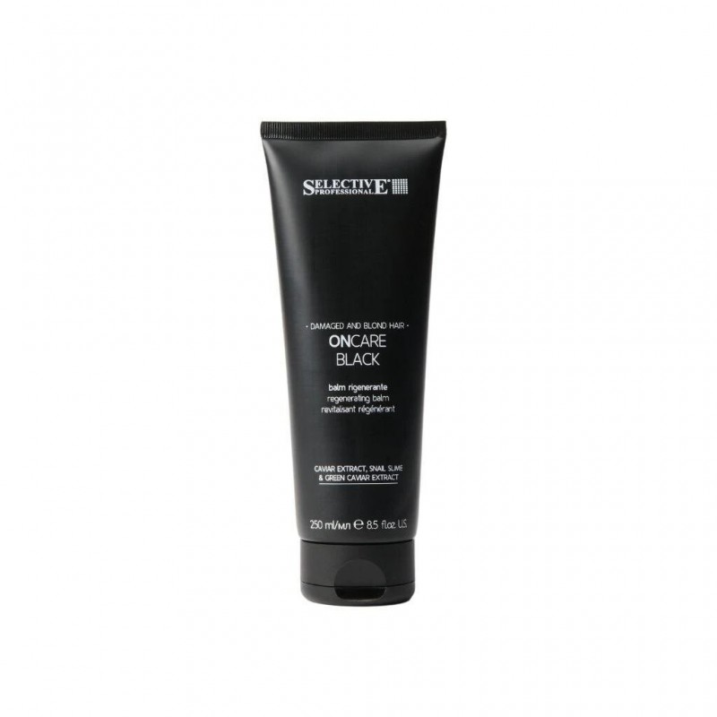 Selective Professional OnCare Black Balm è un balsamo rigenerante, rimpolpante studiato per i capelli biondi sfibrati e danneggiati. La sua formula cremosa e leggera, idrata e nutre la fibra capillare senza appesantire Contiene l'esclusiva combinazione di estratto di caviale, bava di lumaca, caviale verde e polvere di carbone che aiuta a rimpolpare le fibre danneggiate e devitalizzate dei capelli biondi decolorati sfibrati. Districa con facilità e dona tono, elasticità e rende il capello morbido e setoso.