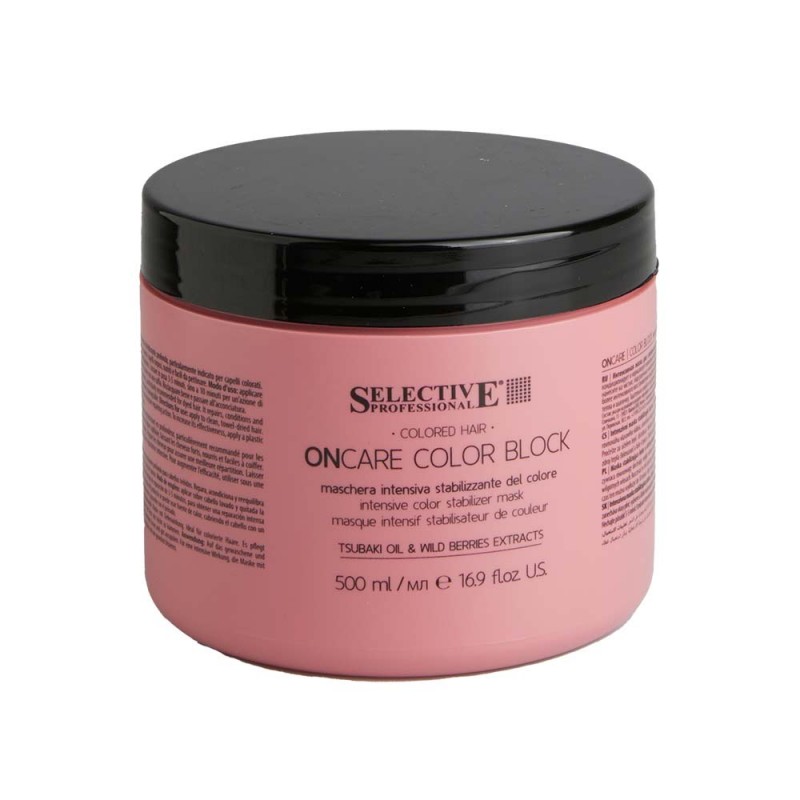 Selective Professional OnCare Color Block Mask è una maschera idratante, stabilizzante e protettivo studiato per i capelli colorati. La sua formula ristrutturante in profondità , ripara, condiziona e riequilibra la fibra capillare, lasciando i capelli corposi, nutriti e facili da pettinare senza appensantire. Contiene estratti di olio di Camelia, di frutti di bosco e il complesso "Vibrariche" che donano morbidezza e nutrimento prevenendo la perdita di colore. Dona intensa luminosità al colore, rende i capelli facilmente districabili e li protegge dalle agressioni esterne per una durata più lunga e vibrante del colore.