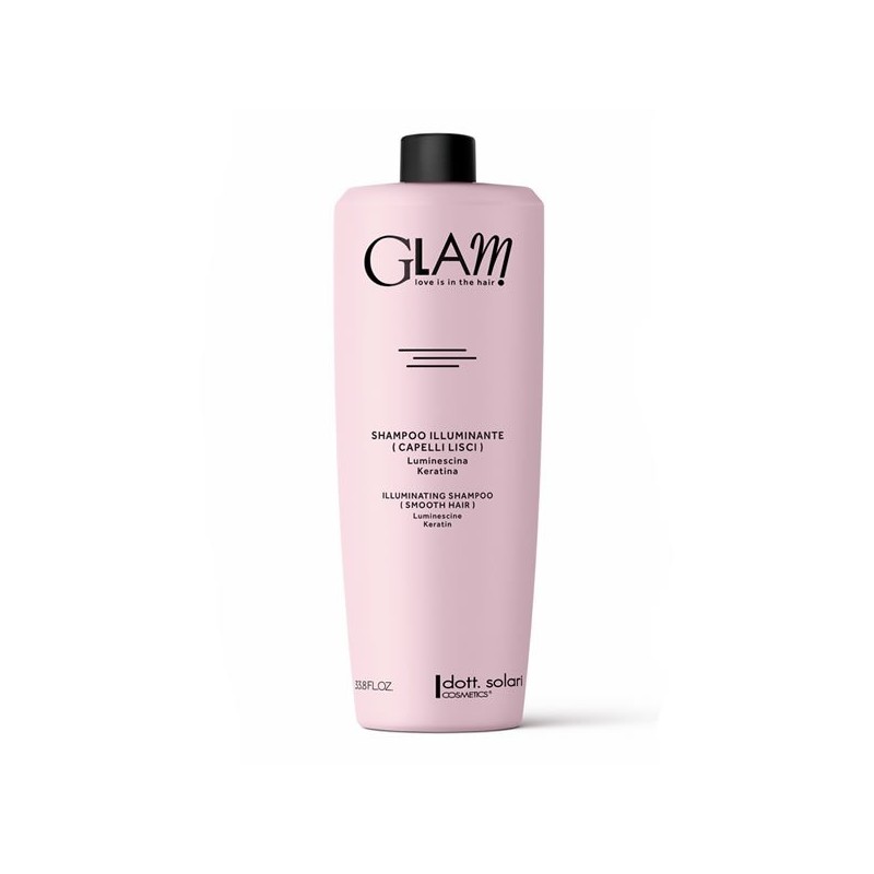dott. solari COSMETICS Glam Illuminating Shampoo Smooth Hair è uno shampoo illuminante disciplinante adatto ai capelli lisci, spenti e opachi. Deterge delicatamente eliminando le impurità e dona idratazione, definizione e controllo, senza appesantire la fibra capillare. La sua formula arricchita con Keratina e Luminescina ristruttura la fibra capillare donando nuova luminosità e un tocco setoso ai capelli. Grazie all'azione nutriente e rigenerante, restituisce morbidezza e vitalità alla chioma, lasciandola leggera e luminosa.