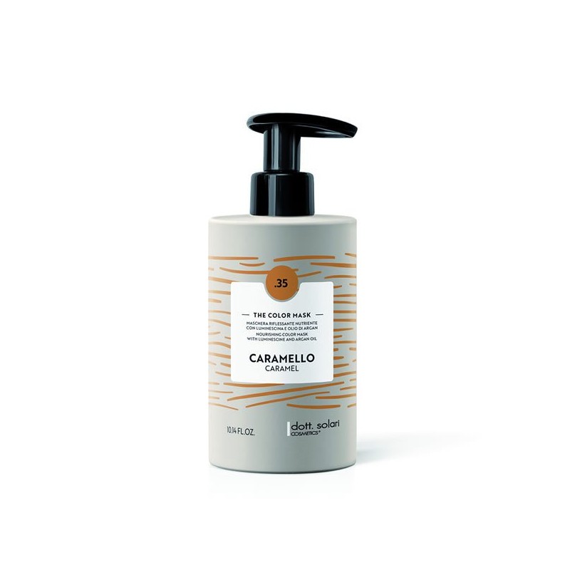 dott. solari COSMETICS The Color Mask Caramel è una maschera riflessante e nutriente arricchita con pigmenti diretti, ideale per ravvivare e intensificare il colore dei capelli. La sua formula arricchita con estratto di Argan, estratto di camomilla e pantenolo nutre i capelli in profondità, donando brillantezza e contribuendo a mantenere viva l'intensità dei riflessi, sia su capelli naturali che colorati, tra un trattamento e l'altro. Su capelli naturali, dona nuova luminosità e vitalità esaltando il colore naturale.