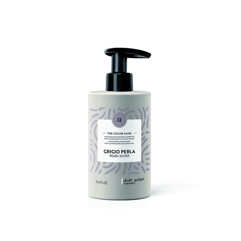 dott. solari COSMETICS The Color Pearl Silver una maschera anti-giallo riflessante e nutriente arricchita con pigmenti diretti, adatta a creare eleganti sfumature di grigio su capelli bianchi o decolorati, previa tonalizzazione antigiallo. La sua formula arricchita con estratto di Argan, estratto di camomilla e pantenolo nutre i capelli in profondità, donando brillantezza e contribuendo a mantenere viva l'intensità dei riflessi, sia su capelli naturali che colorati, tra un trattamento e l'altro.