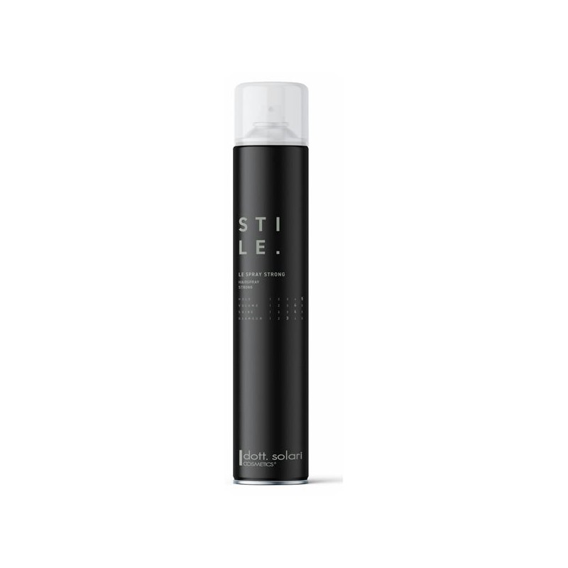 dott. solari STILE LE SPRAY Strong Hairspray è una lacca a fissaggio forte perfetta per definire e mantenere l'acconciatura senza irrigidire i capelli. La sua formula a base alcolica ad asciugatura rapida crea un film sottile che protegge i capelli dagli stress ambientali e contrasta efficacemente l'effetto crespo causato dall'umidità. Arricchita con ingredienti nutrienti e lucidanti, lascia i capelli morbidi, brillanti e perfettamente disciplinati. Ideale perfissare la piega, definire i volumi, eliminare l'effetto crespo e perfezionare lo styling con una tenuta forte ma naturale.